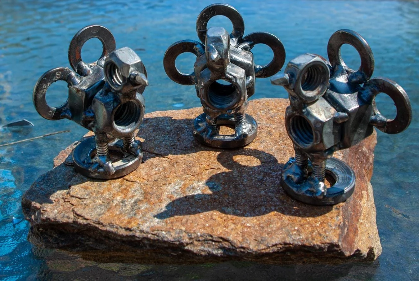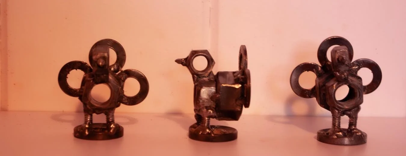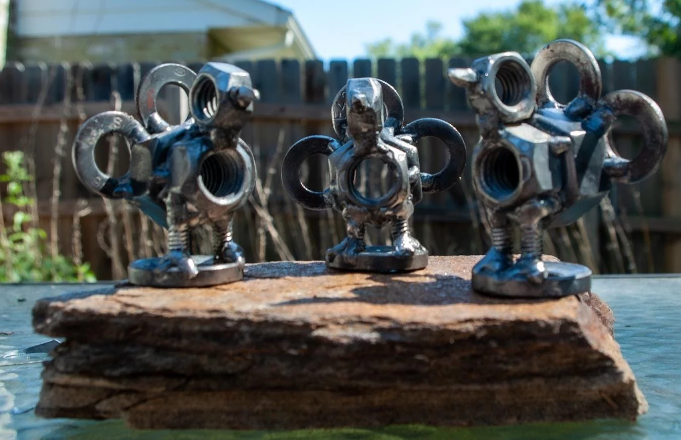 Cute little metal turkey statue. Perfect for Thanksgiving or Fall decorations, indoor and outdoor! Each turkey is hand-made from scrap metal that is welded together. The turkeys are spray-painted with clear-coat paint to protect them from rusting. These turkeys are 3 inches tall, with a width of 2.75 inches. Each turkey is sold individually.
